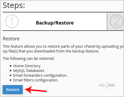 3. Under "Backup/Restore" text, click on the "Restore" button.